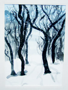 Shown is a watercolor painting titled “Winter Walk” by United Local Freshman Rihanna Guzzetti. (Photo by Morgan Ahart)