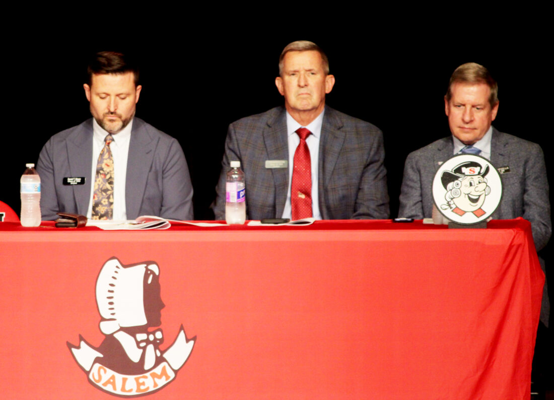 Shown from left are Salem High School Alumni Association Treasurer Daniel T. Moore, President Tim Harrington, and First Vice-President and Scholarship & Grant Committee Chairman Dr. Peter Apicella. (Photo by Morgan Ahart)