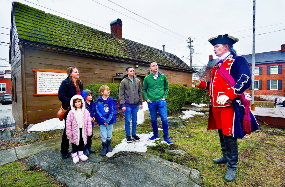 Ryan Williams, dressed as George Washington, talks to visitors during an open house at George Washington’s Office Museum in Winchester, Va., on Presidents Day. Williams is a lead interpreter at the museum at the corner of Cork and Braddock streets. Washington had an office here from September 1755 to December 1756 while Fort Loudoun was being built on Winchester’s north side. (Photo by Ginger Perry/Special to The Winchester Star)