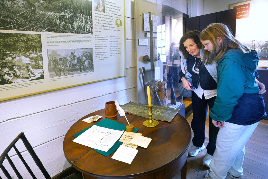 - Teri Price, left, of Stephens City, Virginia, and her granddaughter, Abigail Blevins, 10, look at items on a desk in George Washington’s Office Museum in downtown Winchester, Va. Abigail, a fourth grader from Warrenton, Va., has been studying about George Washington in school. (Photo by Ginger Perry/Special to The Winchester Star)