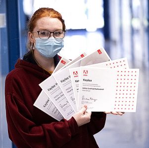 There is a wealth of credentials that students enrolled in the IMM program can receive upon completing the coursework. They include: Adobe Certified Associate in Visual Design using Adobe Photoshop, Adobe Certified Associate in Graphic Design using Adobe Illustrator, Adobe Certified Associate in Print & Digital Media Publication Using Adobe InDesign, Adobe Certified Associate in Digital Video using Adobe Premiere Pro, Adobe Certified Associate in Visual Effects & Motion Graphics using Adobe After Effects, and Adobe Certified Associate in Multiple Animation using Adobe Animate CC, and CompTIA+ Fundamentals. Students can also earn two Adobe Certified Associate certifications and an Adobe Certified Professional specialty certificate for Visual, Web or Video Design. There is also an articulation agreement available with Kent State University for students enrolling in the IMM program. Students can be rewarded up to 12 credits which is the equivalent of credit for 4 courses toward an Associate’s Degree of Applied Business in Computer Technology for the work they completed during high school dependent upon meeting the requirements which include completing the program with a grade point average of 3.0, submitting an application within 15 months of graduation, and having an official high school transcript.