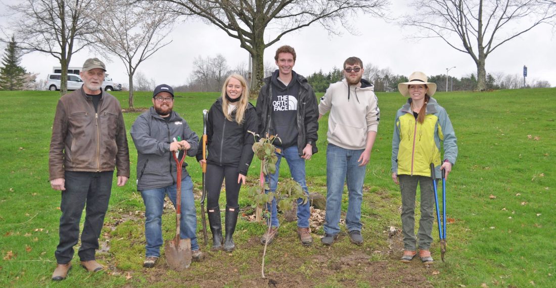 Observing Arbor Day on the Salem Campus were, from left, John Majernik, Augustin Holman, Alicia Costello, Brennan McGuire, Owen Conway and Sarah Eichler. (Submitted photo)
