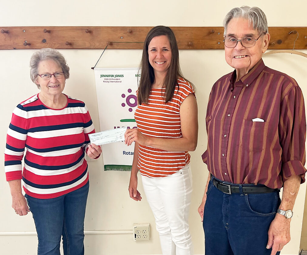 The Columbiana Rotary Club recently made a $125 donation to the Columbiana Baseball Association. The club also sponsored a sign. Shown, from left, Rotary Club president Carol Cobbs, Theresa Master, Columbiana Baseball Association; and Rotarian Jack Guy. (Submitted material)