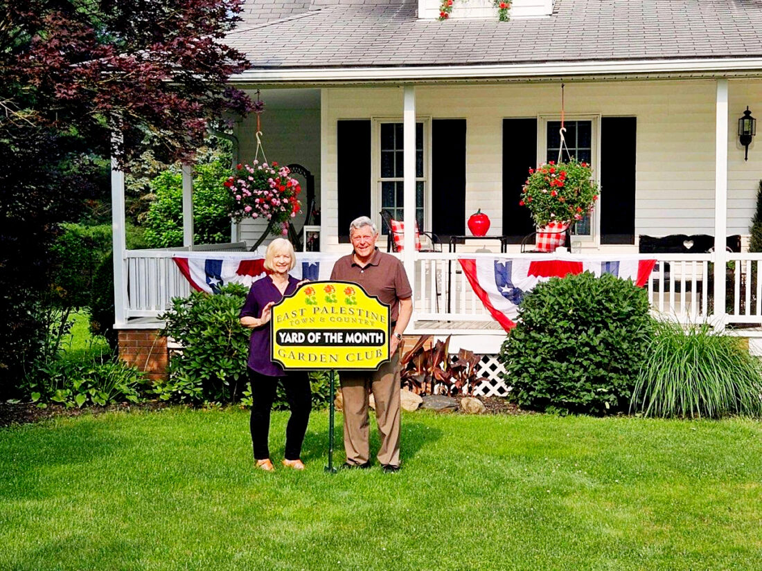 The Town and Country Garden Club of East Palestine has selected a home for July’s “Yard of the Month.” The honor goes to Gary and Cindy Clark’s home located at 110 Park Drive, East Palestine. Most of their flowers are annuals under a backdrop of patriotic flags and red, white and blue decorations creating a very beautiful setting. There are also some tropical flowers which Gary takes into the house every winter to save until the next spring. Along with these flowers, they also have a banana tree. Their beautiful landscaping is made up of old bricks, which had been tossed in the creek behind their home in the past by others. A lovely patio and grape arbor also compliment the back of their home and Cindy has a wagon from her childhood on their porch. (Submitted photo)