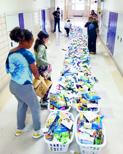 Jr. High Student Senate Advisor Lori DeHoff praised the students for making this year’s drive a strong success, noting that it meaningfully expanded support for district families. The drive provided each of the 36 families with a bag and a basket of food plus hygiene supplies.