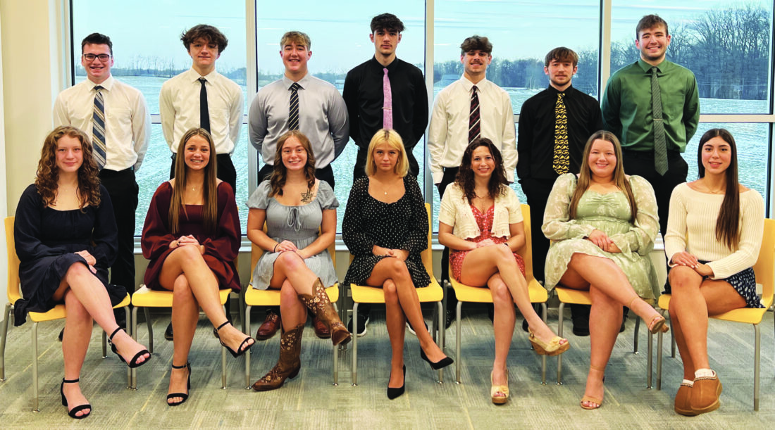 The United Local 2026 Winter Homecoming Court included, from left, front row, Leighton Birmingham, Kylie Holmes, Maggie Cope, Taylor Balint, Natalie Shipley, Queen Abigail Jones, Ines Vilela Rego; back row, Owen Moser, Lucas Palmer, King Tyler Wood, Wyatt Blevins, Kadin Schonauer, Jason Pratt and Levi Lucas. (Submitted photo)