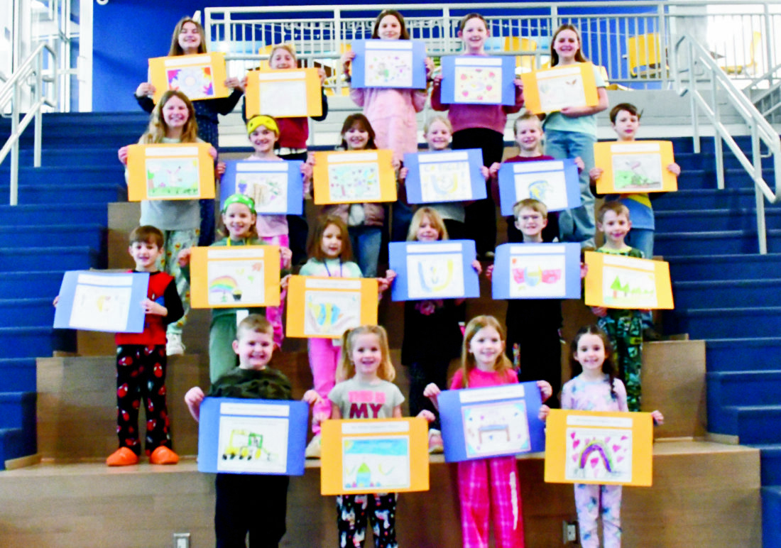 The United Community Foundation will host its Eggstravaganza breakfast from 7 a.m. to noon Saturday at the Winona Friends Church. Shown are the students whose placemats will be used during the event. From left, first row, Otto Muniz, Lauren Mattevi, Jadey Simmons, Coraline House; second row, Weston Goodyear, Annie Ludwig, Mary Zehentbauer, Lauren Woolf, Connor Holenchick, Israel Barcey; third row, Amelia Mercer, Fiona Davis, Vivian Thompson, Kinslee Bricker, Lacey Bricker, Oliver Green; fourth row, Kaia Donohue, Jeremiah Stoltzfus, Adalynn Greathouse, Emma Troyer and Samantha Hilton. Not pictured is Maddalynn Shaffer. (Submitted photo