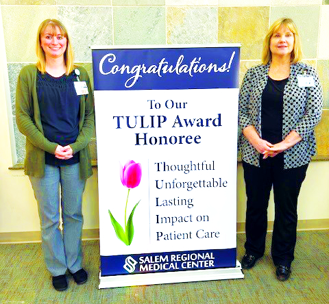 TULIP Award nominations may be emailed to TulipAward@salemregional.com. Nominators should include their name and contact information, the nominee’s name, area where the staff member works and how he or she went above and beyond to provide care. Nomination forms are also available outside of SRMC’s cafeteria.
