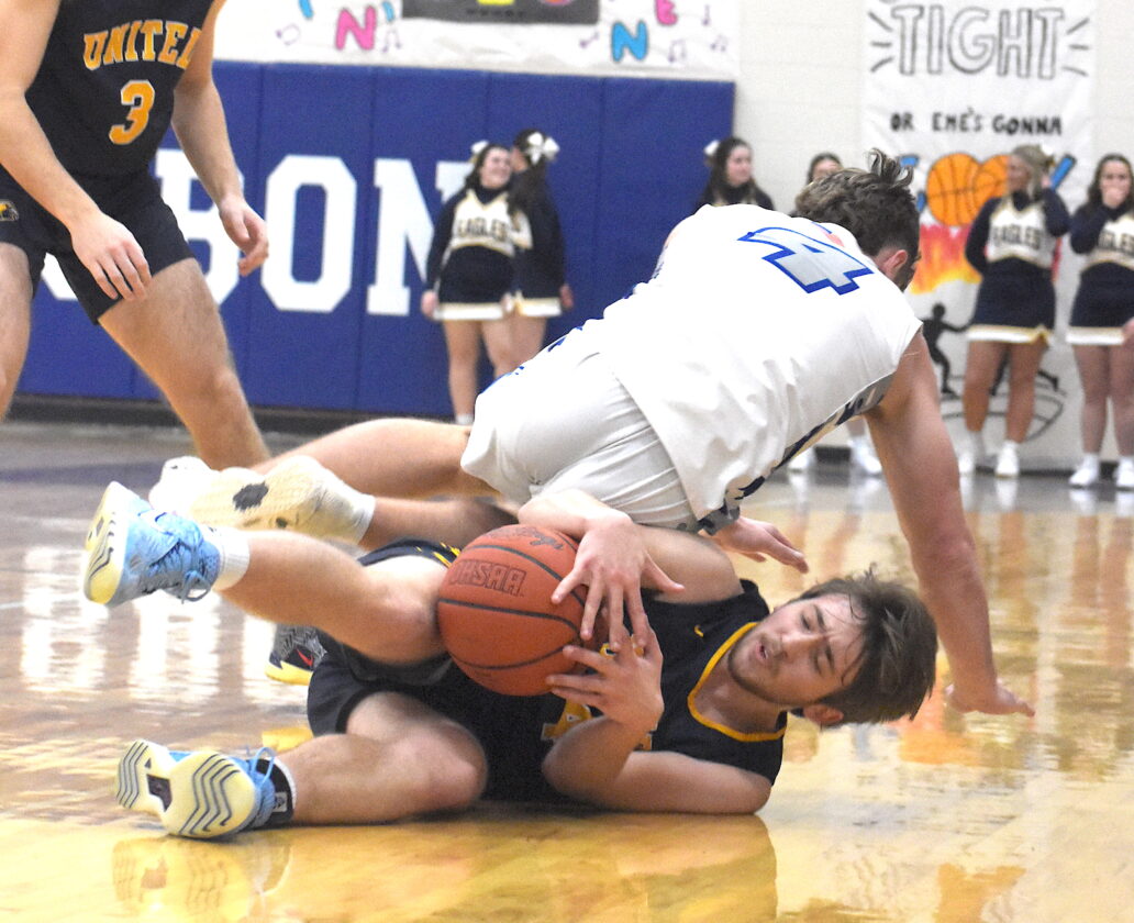 UNITED SCORING: M’Kyan Haynes 2-3-7, Abram Ceresna 2-2-8, Jason Pratt 3-5-13, Kota Shasteen 2-1-5, Kadin Schonauer 0-0-0, Matthew Hoopes 5-1-12, Gavin Coffee 1-0-2. TEAM TOTALS: 15, 12-20: 47.