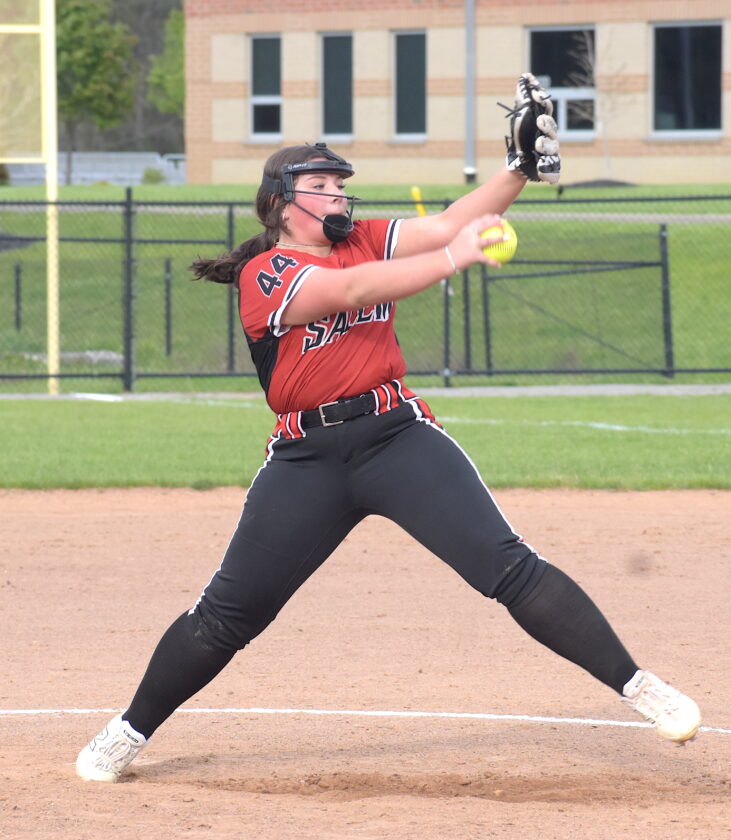 Salem’s Morgan Colian pitches against Beaver Local on Monday.