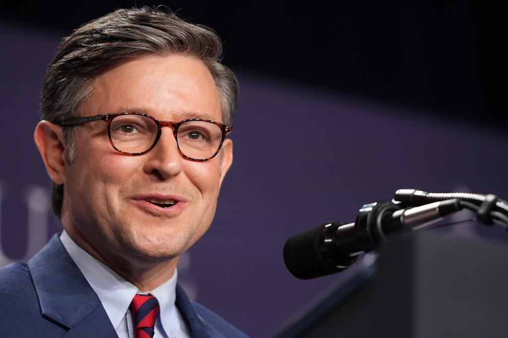 House Speaker Mike Johnson of La., speaks before President Donald Trump at the 2025 House Republican Members Conference Dinner at Trump National Doral Miami in Doral, Fla., Monday, Jan. 27, 2025. (AP Photo/Mark Schiefelbein)